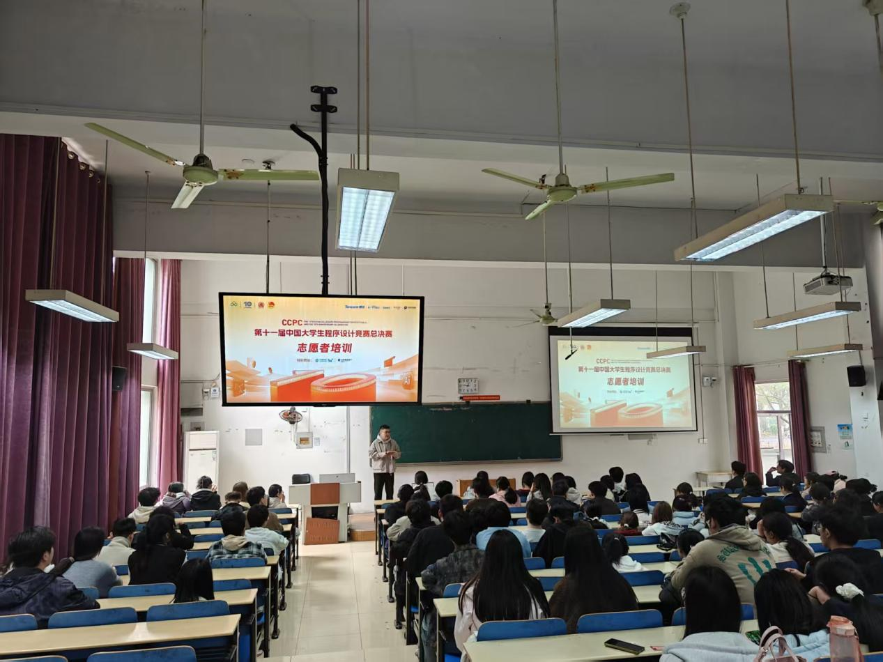 为保障第十一届中国大学生程序设计竞赛总决赛顺利举办,提升志愿者服务水平与专业素养,3月31日大赛组委会在14号教学楼组织开展了志愿者专项培训活动。来自计算机与软件学院的114位志愿者齐聚一堂,通过系统学习与演练,为即将到来的赛事服务做好充分准备。