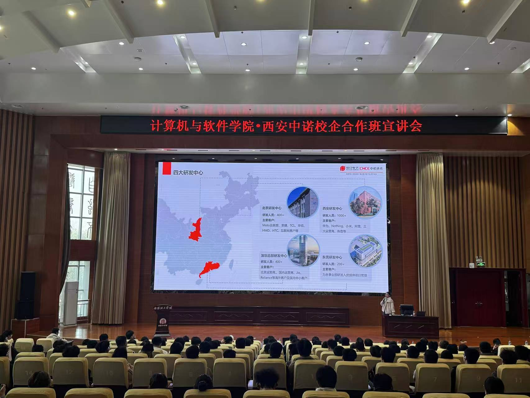 本网讯(特约记者/闫恒瑜)为深化产教融合,拓宽学生就业渠道,搭建校企人才对接桥梁,3月31日,计算机与软件学院在第三报告厅成功举办西安中诺通讯有限公司专场宣讲会。
