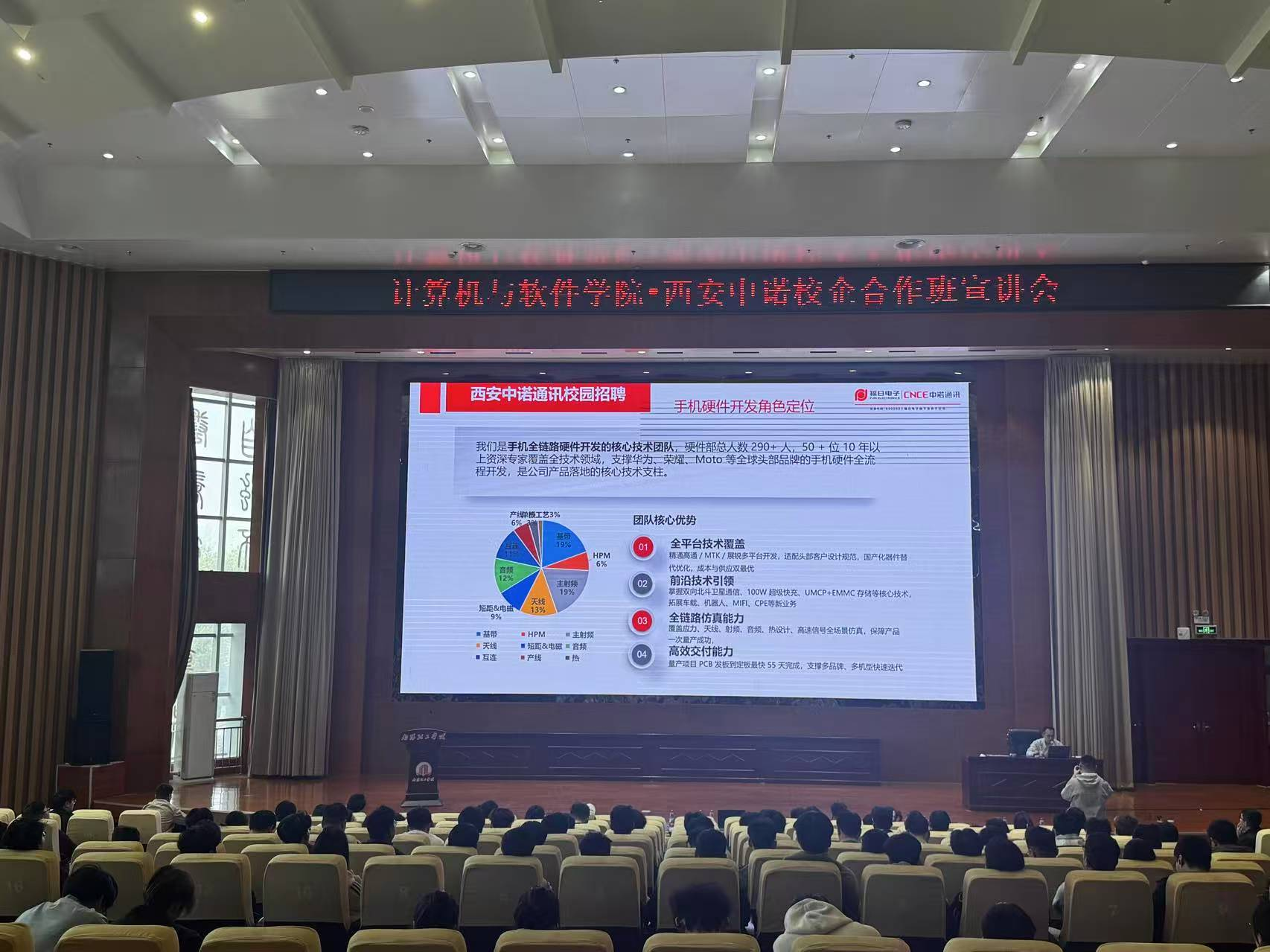据悉,西安中诺通讯有限公司与我院有着深厚的合作基础,此前双方已就共建“订单班”、定向培养人才等事宜达成共识。此次专场宣讲会的成功举办,不仅为我院学子提供了优质的就业和实习机会,搭建了近距离了解企业需求、对接行业前沿的平台,也进一步深化了校企合作内涵,为后续双方在协同育人、课程共建、实践教学等方面的深度合作奠定了坚实基础。