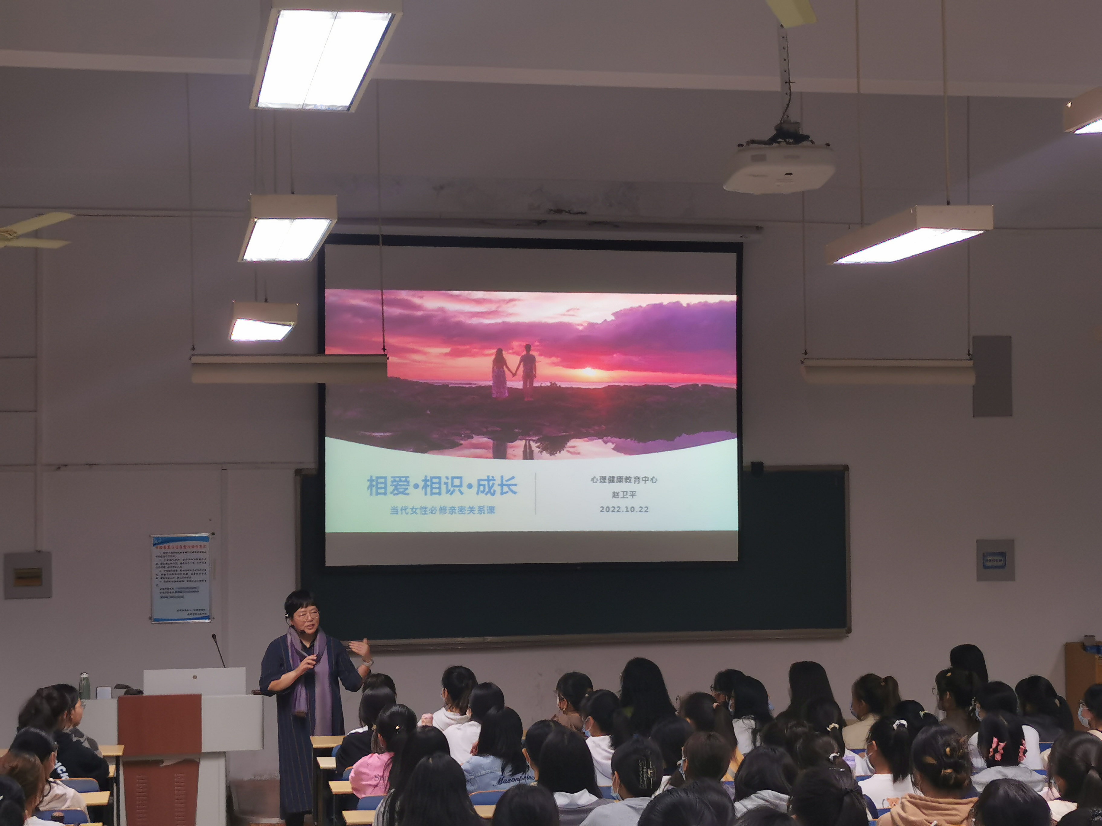 10月22日晚,计算机与软件学院邀请心理中心赵卫平主任为2022级女生开展主题为“相爱·相识·成长”的当代女性必修亲密关系课。从恋爱关系中的相识相处、心理变化、常见问题等几个方面进行了详细讲解,增强了学生对于亲密关系的了解,纠正了学生对于恋爱问题的一些错误认识,促进了新生的心理素质健康发展。