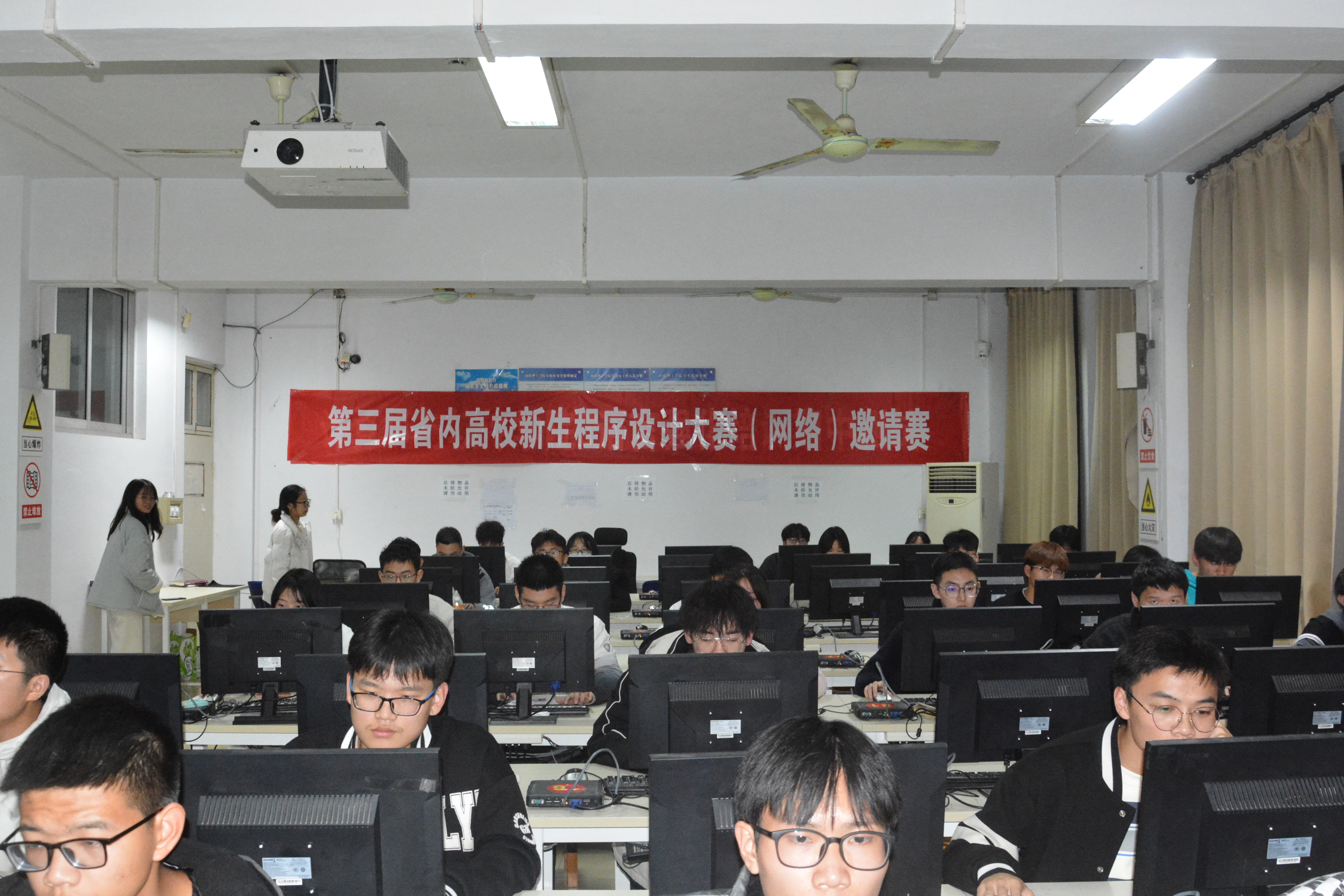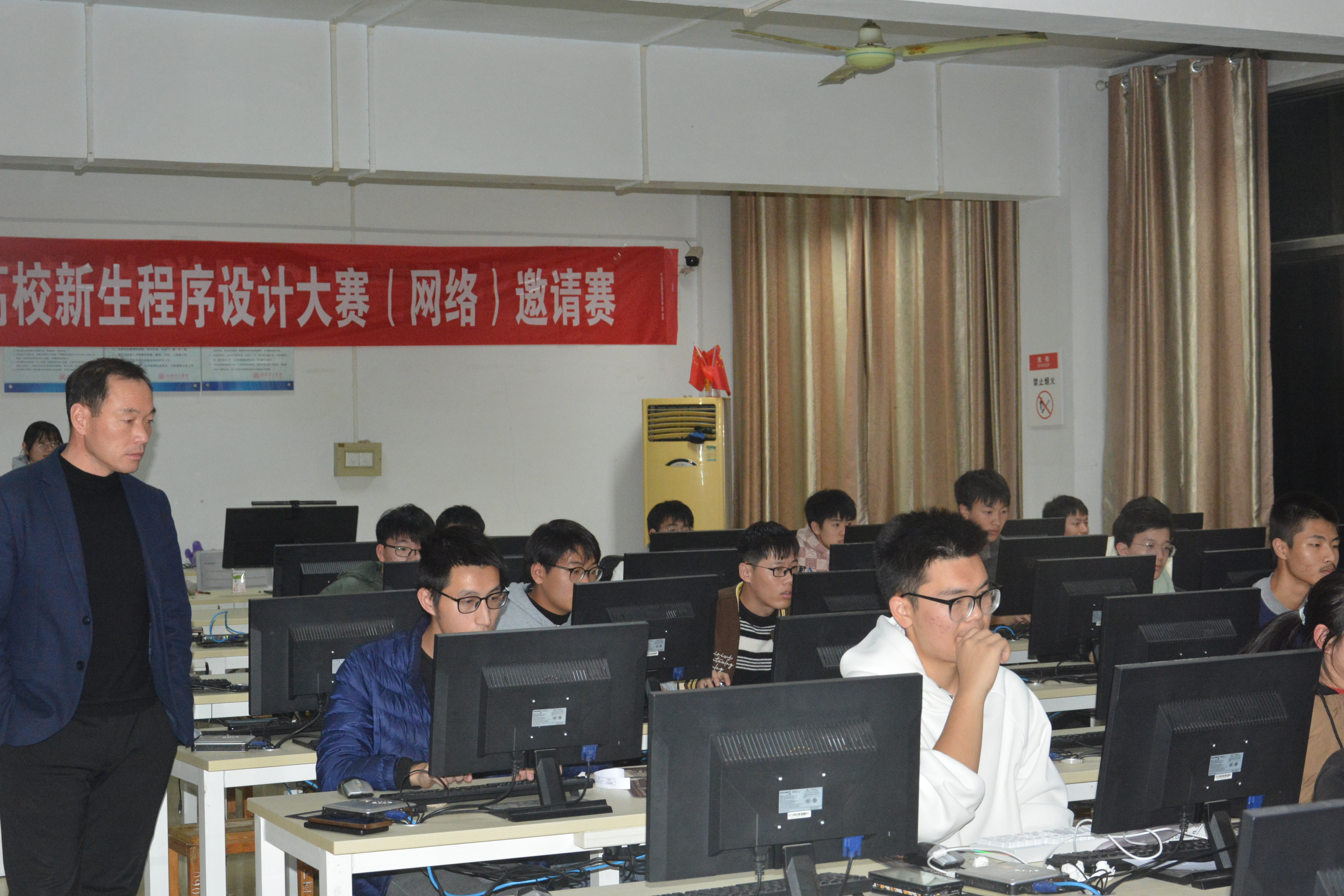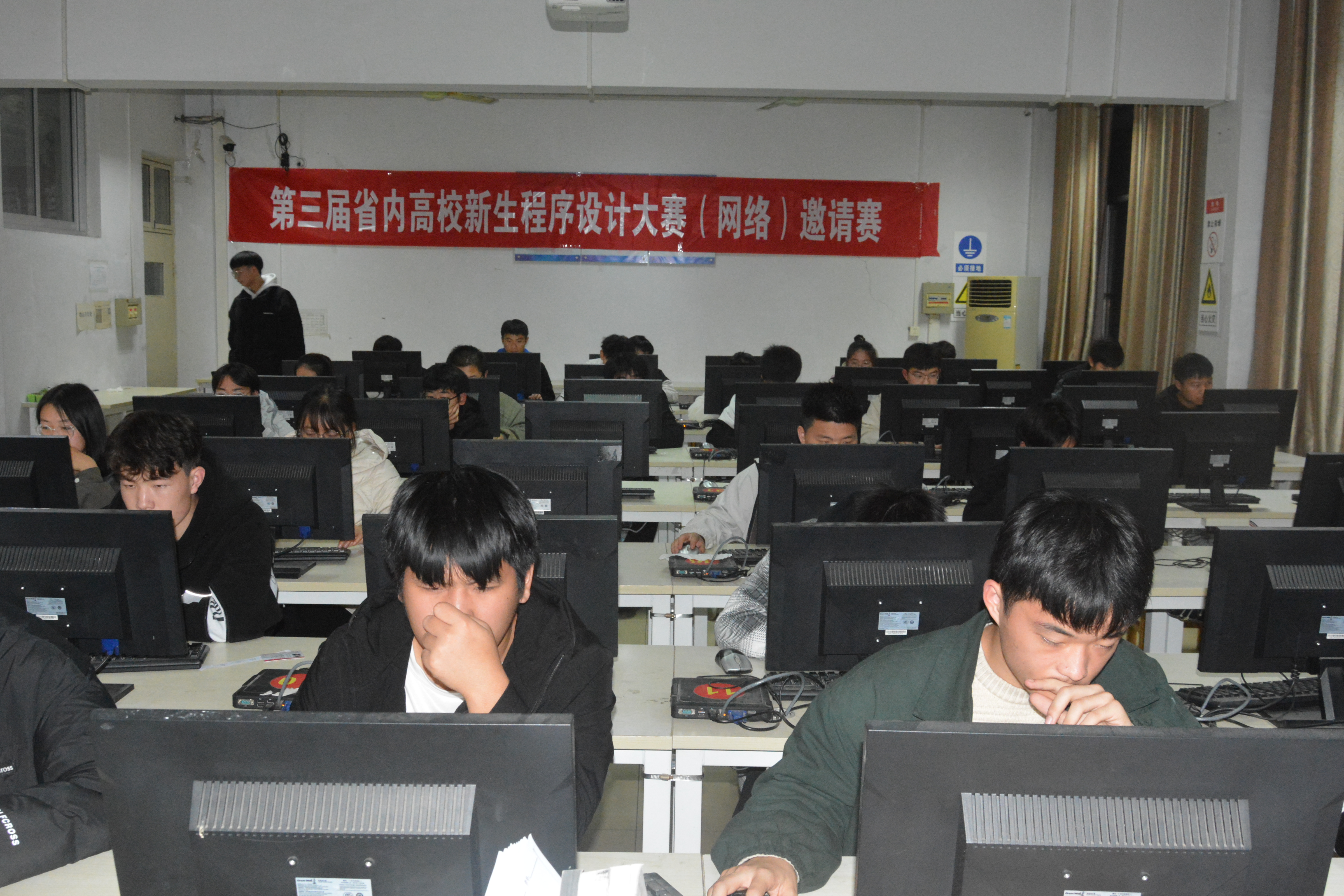 本网讯(特约记者/陈可)为进一步提高学生的创造力及运用计算机技术解决实际问题的综合能力,培养学生的创新思维与合作精神,激发广大同学学习程序设计的热情与兴趣,我院成功举办第三届新生程序设计大赛初赛。本次比赛是以C语言和C++语言为主要程序设计语言,比赛时长为两个小时,比赛强调参赛者计算机程序设计的专业素质,重点考察参赛者程序设计语言、计算理论等相关知识及综合应用能力。比赛过程中,选手们热情高涨,信心十足地将一个个难题攻克,在院系老师的支持下,选手们的认真参与下,此次大赛取得了圆满成功。