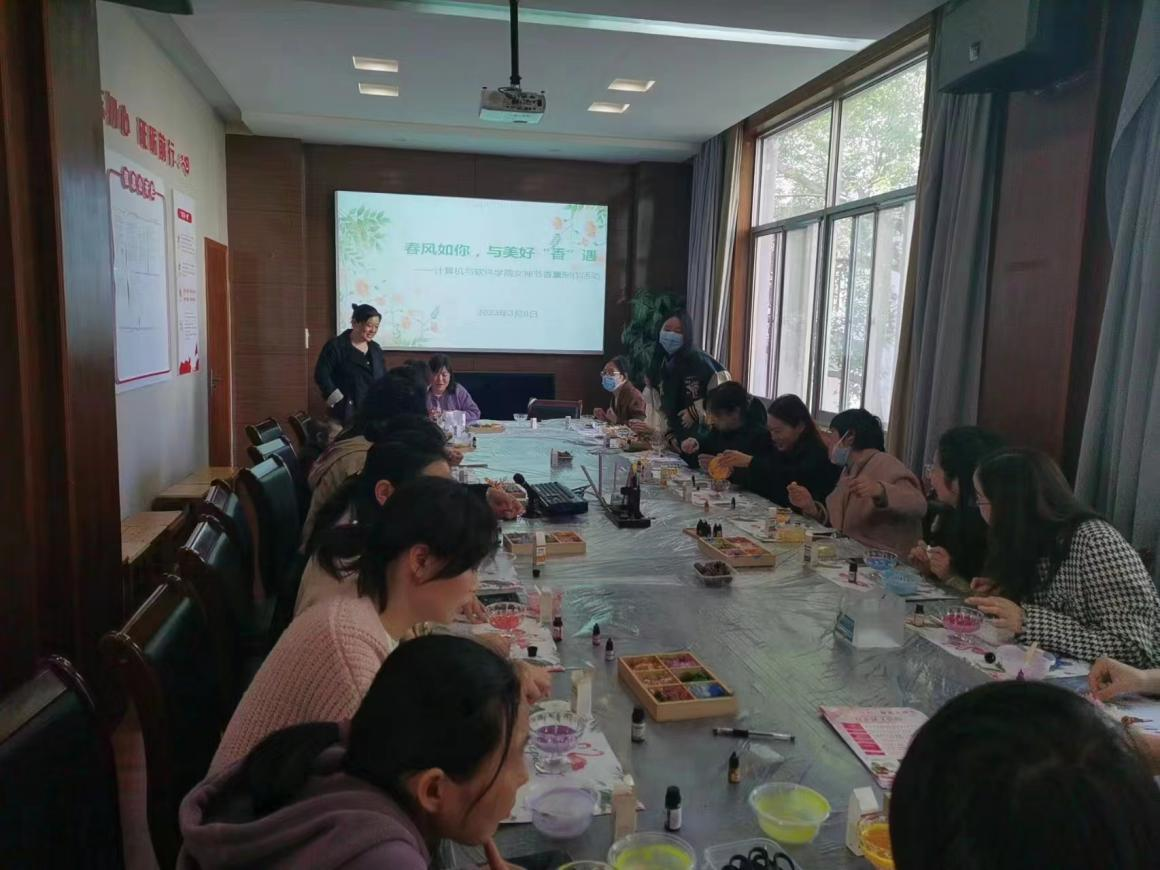春风如你,与美好“香”遇!为帮助女教师们在繁忙的工作中缓解身心压力,学院邀请了南阳市自在手工坊艺术空间教师来院指导女教师制作香薰。活动现场,大家热情高涨、热烈交流,按照制作步骤,精心挑选自己喜欢的干花及模具,制作出各具特色的香薰蜡烛。