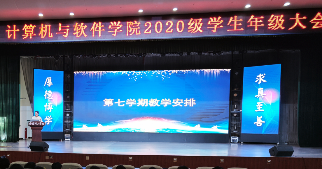 本网讯(特约记者/闫恒瑜)6月8日,计算机与软件学院分别在毕业大厅和音乐大厅举行2020级学生年级大会,学院相关部门负责人出席大会。