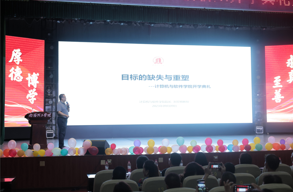 本网讯(特约记者/闫恒瑜)9月9日晚,计算机与软件学院在毕业大厅主会场及第二、第三报告厅分会场同步举行2023级新生开学典礼暨新生家长见面会,并在哔哩哔哩网站同步直播。计算机与软件学院领导班子、辅导员及1413名新生和100余名学生家长参加此次大会。