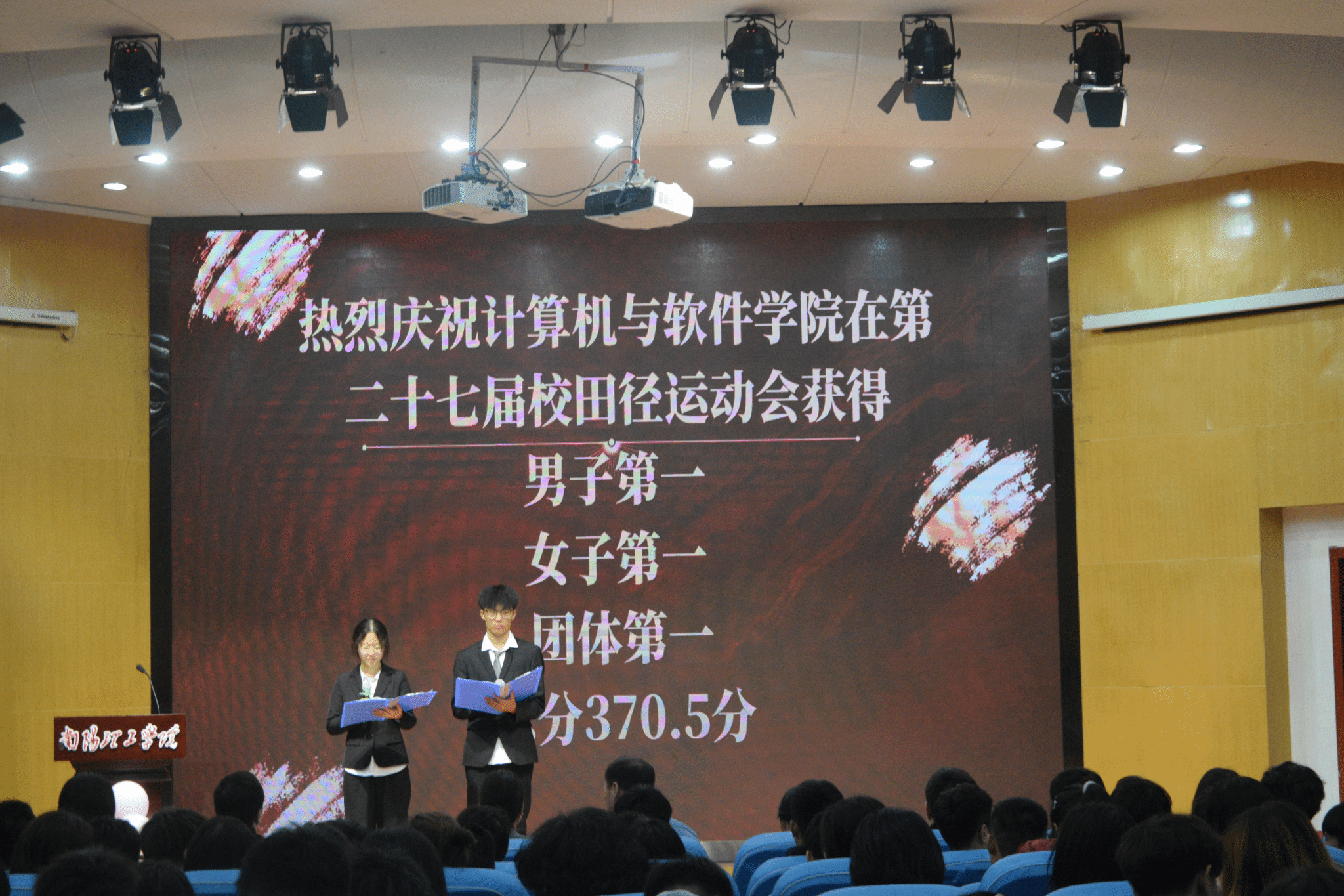 本网讯(学生记者/刘顺博)11月2日,计算机与软件学院在领创空间第二报告厅举办了第二十七届校田径运动会表彰大会。学院负责人、全体辅导员、运动员出席大会。