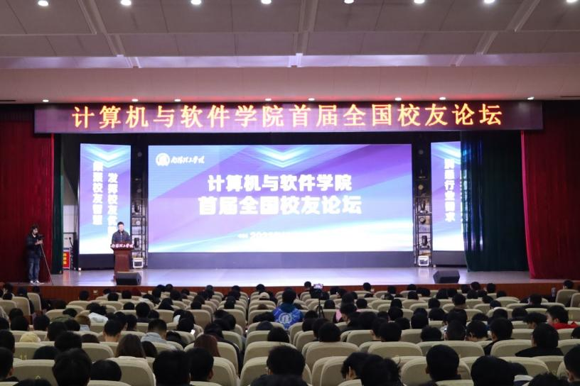 本网讯(学生记者/黄佳欣)12月9日,计算机与软件学院首届全国校友论坛在毕业大厅和第二报告厅同步进行,学院领导班子、2021级全体学生参加论坛。