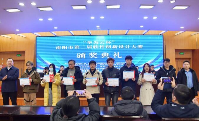 1月16日下午,“华为云杯”南阳市第二届软件创新设计大赛(以下简称“大赛”)颁奖典礼在南阳师范学院成功举办。本届大赛聚焦基于“互联网+”、大数据、物联网的优秀创新创业项目,搭建了南阳软件产业发展与软件人才培养紧密结合、深度对接的重要平台,吸引了高校及企业职工118个项目报名,经过初审、决赛等严格筛选,我院学子共获得二等奖1项、三等奖4项、优秀奖8项的佳绩。