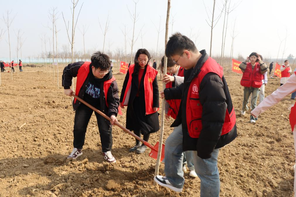 本网讯(学生记者/许石晗)为践行雷锋精神,倡导绿色发展生态文明理念。3月12日,计算机与软件学院学生党员、入党积极分子、雷锋连志愿者们与宛城区团委相关同志来到黄台岗镇开展义务植树活动。