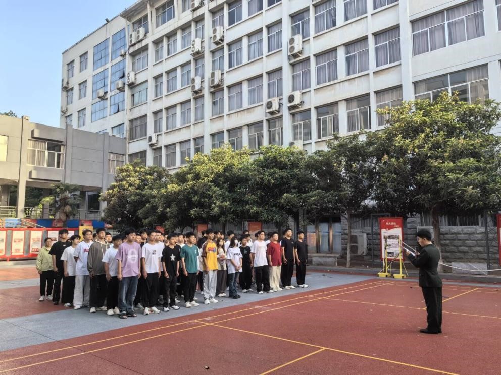 早上7时,来自退役军人协会的护旗手迈着铿锵有力的步伐,护卫着鲜艳的五星红旗来到学生队列前,伴随着嘹亮的《义勇军进行曲》,全场学生庄重伫立,唱国歌行注目礼。随后,退役军人代表马丁以“青春无悔,从军光荣”为主题,讲述在部队艰苦训练、奉献青春的热血故事,鼓励同学们携笔从戎、建功军营。学生代表以“红旗背后的故事”为主题,讲述了坚守岗位、开拓创新的升旗手故事,号召同学们牢记为新中国默默付出的先辈们,砥砺强国之志,勇担历史重任,积极投身于实现中华民族伟大复兴中国梦的伟大进程中。