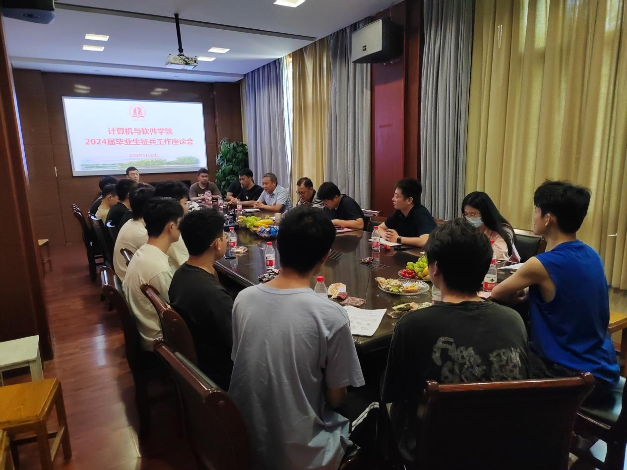 本网讯(特约记者/李洋)5月23日上午,计算机与软件学院在学院二楼会议室召开2024届毕业生征兵工作座谈会。学生处副处长田永磊、国防教育与征兵办公室副主任周密,计算机与软件学院党委书记赵东江,毕业班辅导员,武装专干,以及计算机与软件学院2024届有入伍意向的毕业学生代表参加。