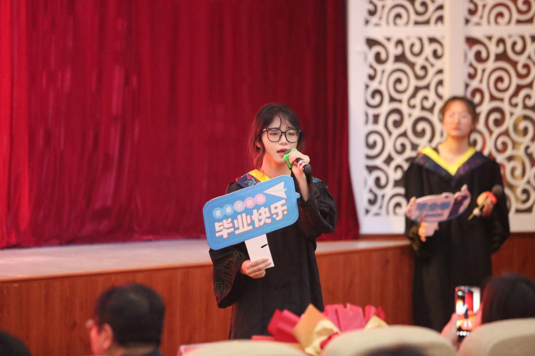 学生代表郑景珊回忆了在校学习和生活的点点滴滴,表达了对母校的眷恋和对未来的憧憬,她由衷的感谢学校的栽培,为母校送上诚挚祝福。在感恩环节,学生们向出席毕业典礼的家长们敬献了鲜花,感谢他们多年来的辛勤付出和无私关爱。