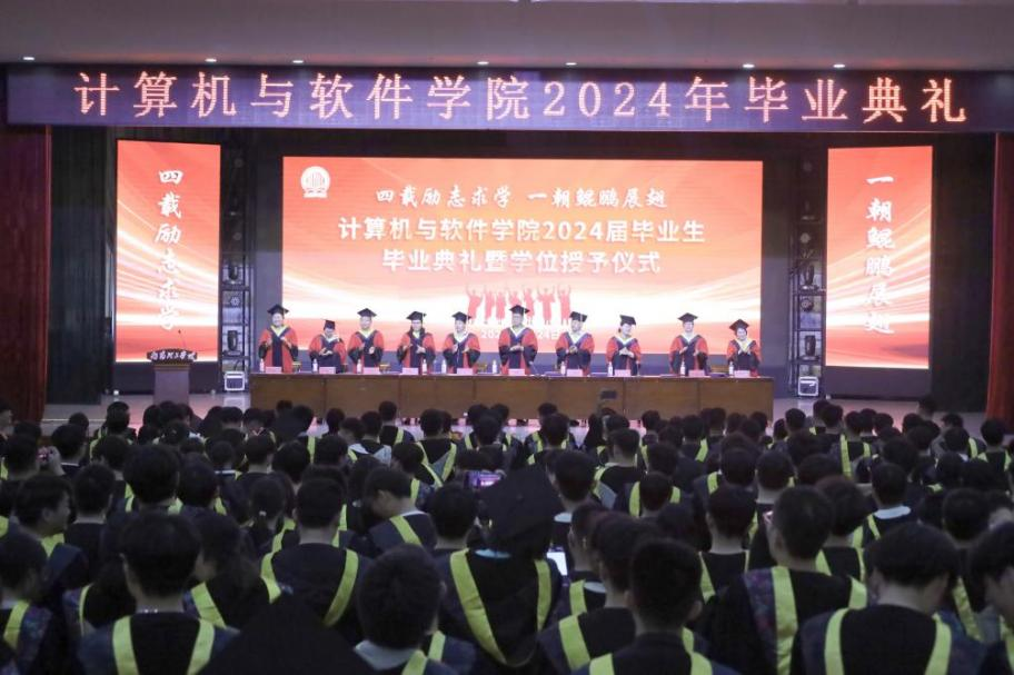 本网讯(学生记者/申子阳)5月24日,计算机与软件学院2024届毕业典礼暨学位授予仪式在毕业大厅隆重举行。计算机与软件学院领导班子、毕业班辅导员及近400名毕业生出席典礼。