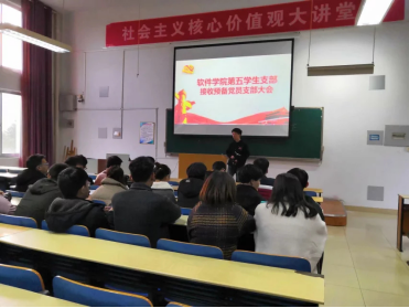 2018年11月26日下午,软件学院第一、三、五、六学生党支部在14教及15教会议室召开接收预备党员的支部大会。本次大会是接收杨岩等54名同志为预备党员以及预备党员转正事宜。会议由各支部书记同志主持。