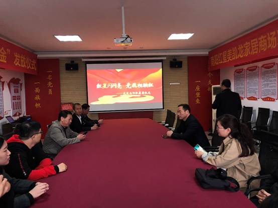 党支部一行来到红星美凯龙行政楼,参观了联合党支部党建连廊,祝孔涛对红星美凯龙的党建连廊建设高度赞扬。在观看红星美凯龙党建工作视频后,双方就各自党建工作开展情况展开交流。祝孔涛肯定红星美凯龙联合党支部在党建与自身业务紧密结合上做出的成绩。学院也将结合高校特点、教学情况、学生活动等开展党建活动,做好学院党建阵地建设,点线面结合,做到党建和教学全面发展,以高质量党建推动学院高质量发展。