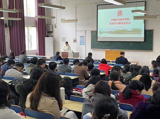 本网讯(记者/曾智)3月23日,在党的百年华诞倒计时100天的特殊时刻,计算机与软件学院召开党史学习教育动员大会,认真学习贯彻习近平总书记重要讲话精神和党中央、教育部的部署要求,对学院开展党史学习教育进行动员、作出安排。计算机与软件学院领导班子及师生党员参加会议,会议由党委书记祝孔涛主持。