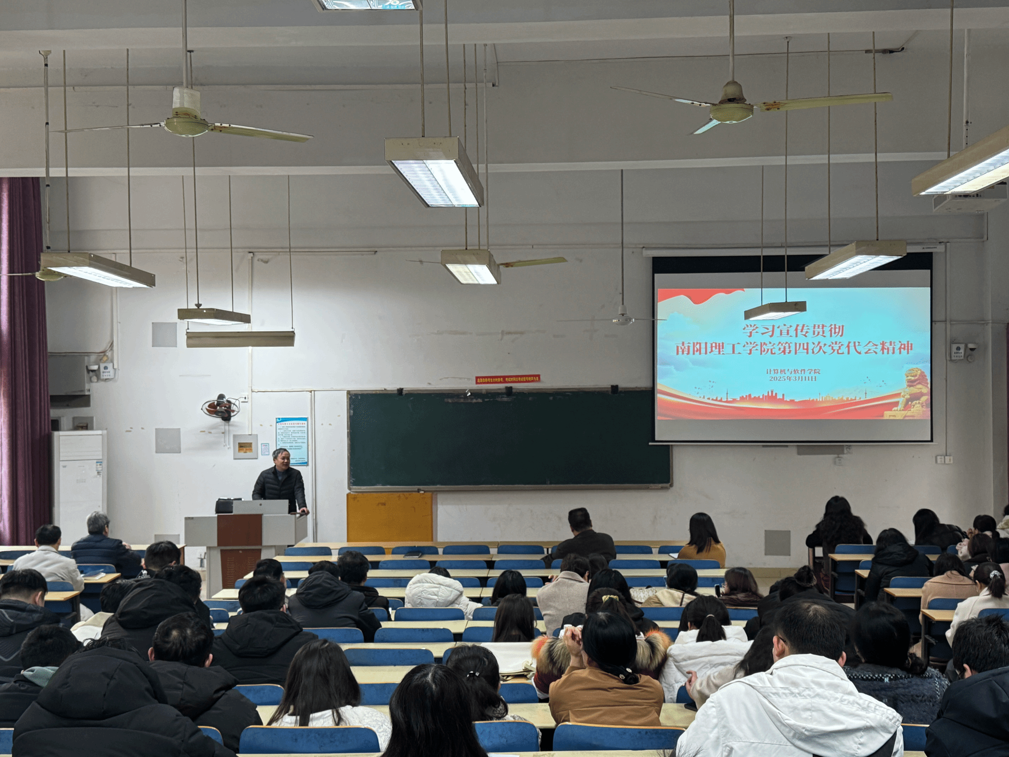 本网讯(特约记者/杨琰)3月11日,计算机与软件学院召开全体教职工大会,深入学习贯彻南阳理工学院第四次党代会精神,会议由学院党委书记赵东江主持。