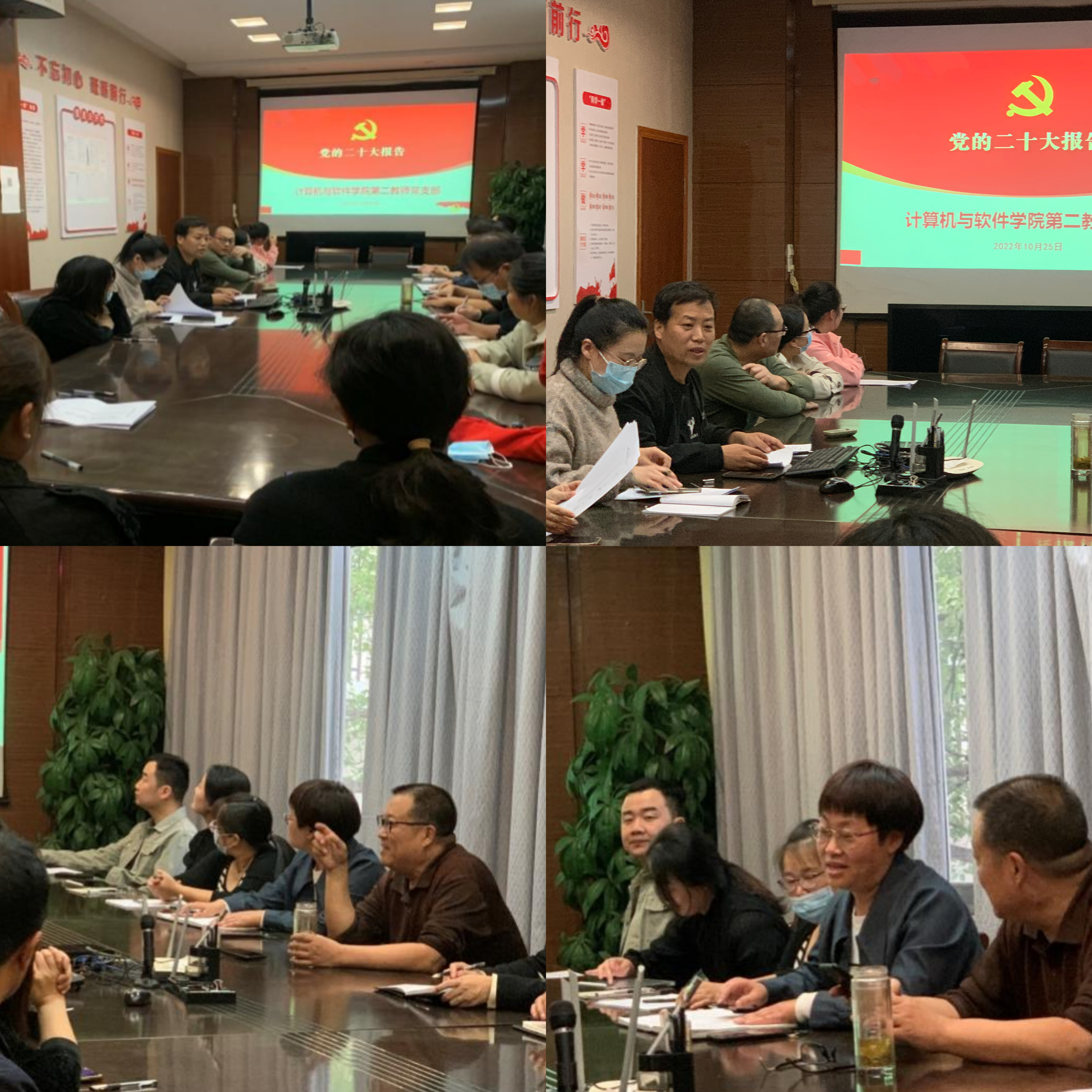 10月25日下午4时,第二教师党支部在计算机与软件学院二楼会议室召开线下党员大会,组织全体党员干部继续深入学习党的二十大报告,开展集中研讨。会上,大家畅谈思想感悟,共话学院未来发展。院领导刘黎明、郑珂,支部书记刘伟和各部门代表进行了重点发言。