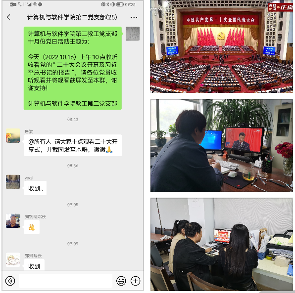 本网讯(特约记者/王丹阳 唐满 刘伟)10月16日上午,举国关注、举世瞩目的中国共产党第二十次全国代表大会在北京人民大会堂盛大开幕。当天上午10时,计算机与软件学院第二教师党支部召开线上党员大会,组织全体党员干部收看党的二十大开幕会盛况。