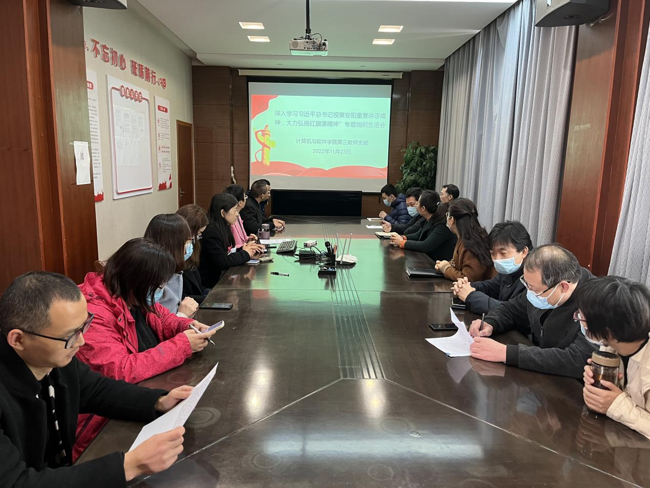 本网讯(特约记者/王秋芬)11月23日上午,计算机与软件学院第三教师党支部召开“深入学习习近平总书记视察安阳重要讲话精神,大力弘扬红旗渠精神”专题组织生活会。观看了专题片《根脉——红旗渠精神》,深刻领会红旗渠精神的丰富内涵和时代价值,弘扬伟大建党精神,弘扬红旗渠精神,赓续红色血脉,不断增强基层党组织组织力、凝聚力、战斗力,更好发挥共产党员先锋模范作用。