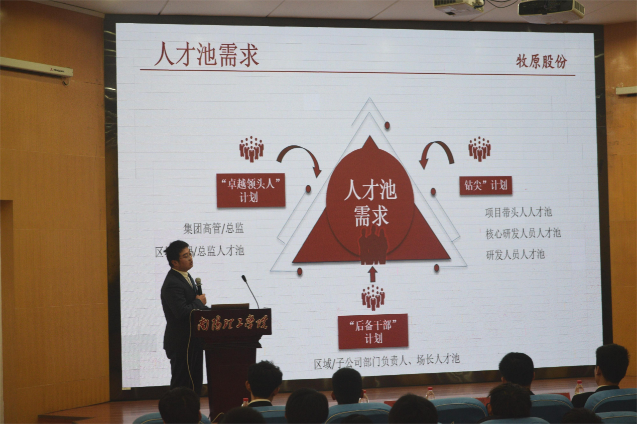 活动伊始,牧原招聘负责人播放了公司的宣传视频,让大家对牧原集团有了一定的认识,之后详细介绍了牧原集团的企业成分和发展现状,并就公司发展史、公司业务概况、全球产业布局、公司核心优势等方面展开了阐述。