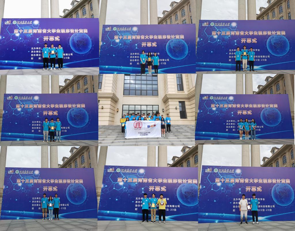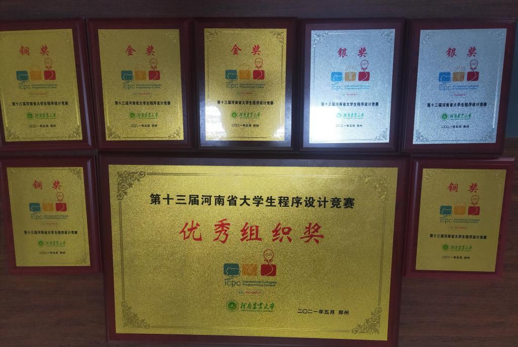 本网讯(特约记者/陈可)5月24日,河南省第十三届大学生程序设计竞赛在河南农业大学(龙子湖校区)落下帷幕,我校派出八支队伍的24名学子参赛,共获得金奖两项,银奖两项,铜奖三项的佳绩。金奖排名河南省高校第4位,并获得优秀组织单位奖。
