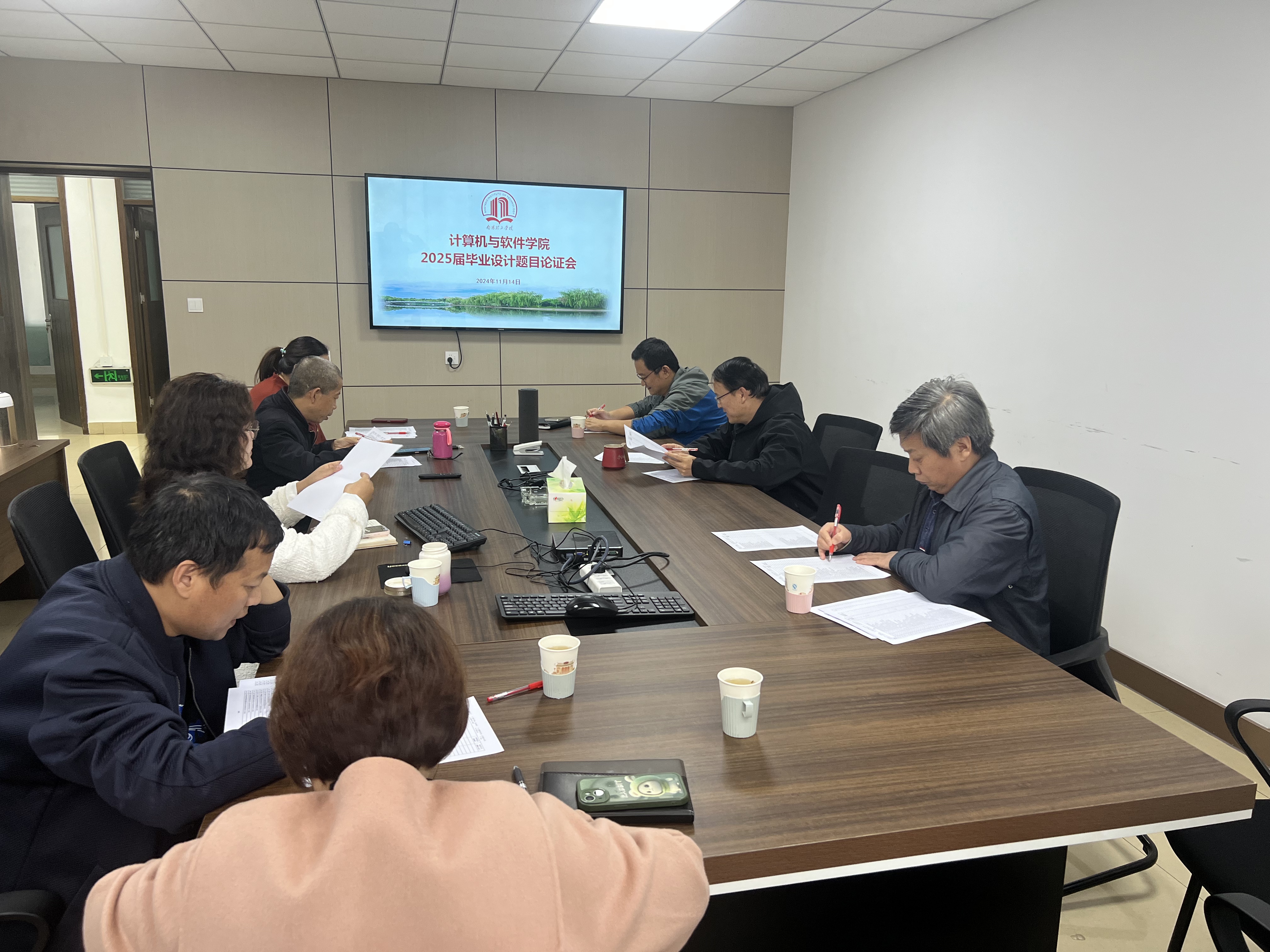为推进2025届本科毕业设计(论文)工作,提高毕业设计(论文)质量,根据学校安排,11月14日下午,计算机与软件学院在15教第一会议室召开了2025届本科毕业设计课题论证会。会议由郭东恩副院长主持,学院学位评定分委员成员、专业(方向)负责人、教研室负责人参加了论证会。