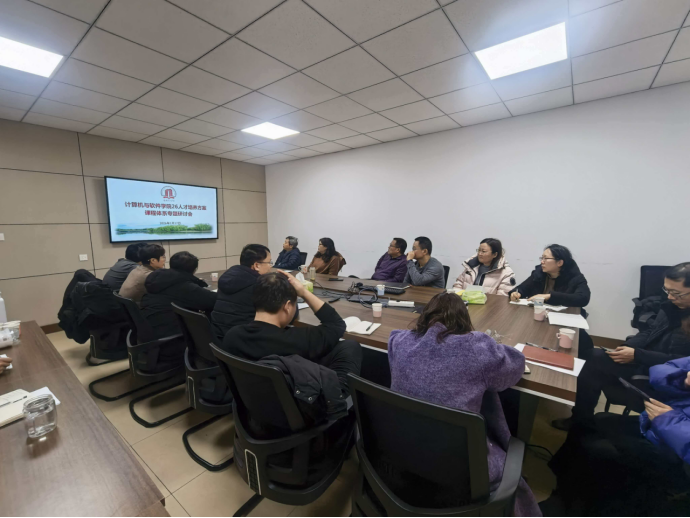 为持续深化教育教学改革,优化专业人才培养体系,计算机与软件学院于2026年1月17日下午在一楼会议室召开2026版人才培养方案课程体系专题研讨会。学院领导班子、各专业负责人、教研室主任及教务办成员共同参会。