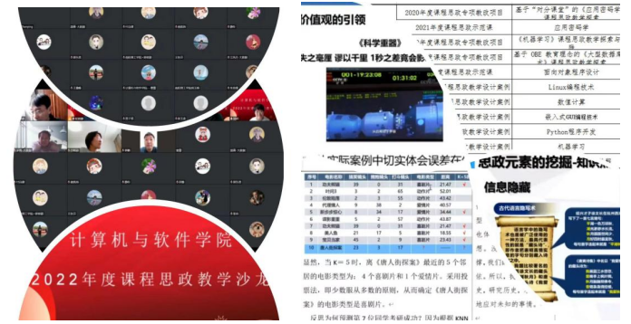 12月8日上午,计算机与软件学院举办了“课程思政”线上教学沙龙活动,学院全体领导班子出席活动,参与教师人数达到80多人。此次活动主要邀请了学院近两年获批课程思政教改、课程思政示范课、课程思政教材以及优秀课程思政设计案例教师分享思政课程建设过程中的心得体会与经验,让更多的教师能够深入了解课程思政的理念、参与到课程思政建设中。