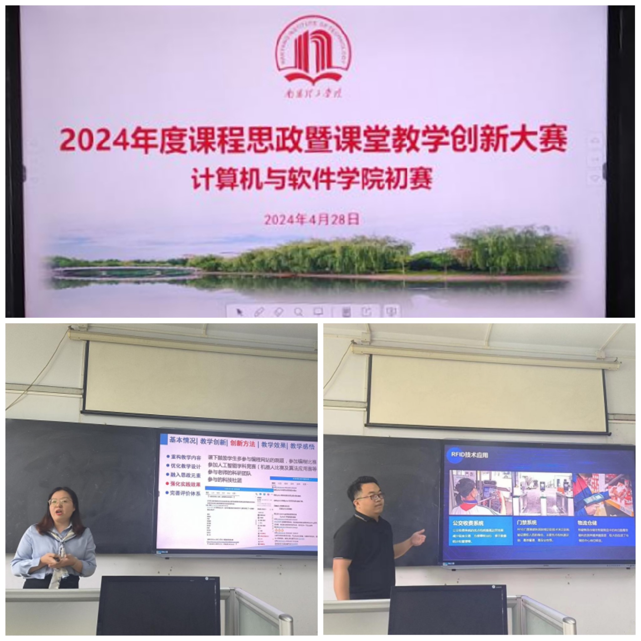 为深入贯彻落实党的二十大精神,落实立德树人根本任务,助力我院课程思政及新工科建设,聚焦教学创新、推动教学革命,引导我校教师潜心教书育人,提升教师利用数字技术以优化、创新和变革教育教学活动的意识、能力和责任,不断激发我院课堂教学创新活力,我院于4月28日上午在15413教室举办了2024年度课程思政暨课堂教学创新大赛初赛。