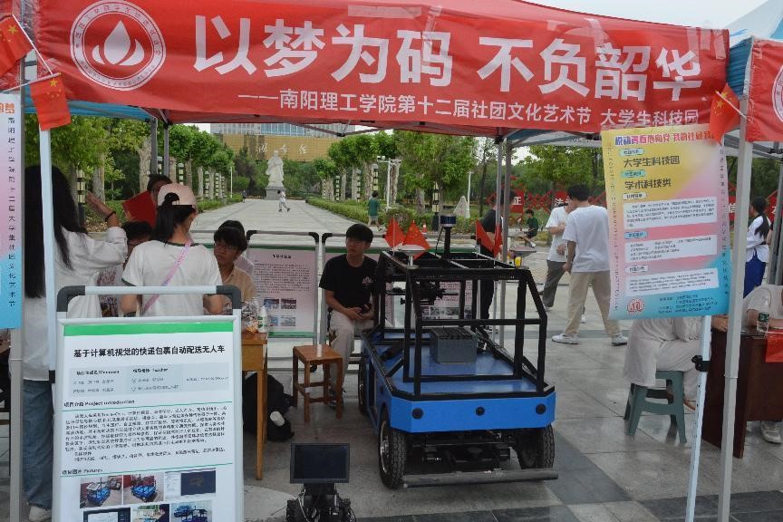 在夏日的骄阳下,大学生科技园的展区成为了科技与创新的聚集地。他们不仅展示了自主研发的无人车技术,更通过实际操作和动态表演,向全校师生展现了科技园在科技创新方面的强大实力。活动现场,无人车成为了众人关注的焦点。从小巧灵活的侦查型无人车,到庞大稳健的运输型无人车,每一款都代表了科技园同学们的智慧和努力。这些无人车在现场进行了精彩的动态表演,如自如地行驶、精确转弯、智能避障等,引发了现场观众的阵阵喝彩。通过本次社团文化节,也让全校同学更加熟悉大学生科技园。大学生科技园成立于2004年10月,至今已经走过了19个年头,科技园占地2000平方米,可容纳学生2300余人,拥有33个学习型工作室,2022年获得河南省十佳社团荣誉称号。近年来,大学生科技园学生共参与专业学科竞赛40余项,如ACM国际大学生程序设计大赛、挑战杯、互联网+、大学生创新创业大赛、蓝桥杯程序设计大赛、信息安全大赛等多项高级别赛事。连续三年举办高校新生程序设计大赛,共计60多所高校的近8000余名学生参加。近三年来,共计获得省部级以上奖励900余项,占全校获奖总数的三分之一。其中国家级奖励300余项,省部级奖励600余项。参与学生达3000余人次,并获奖金累计达30余万元。