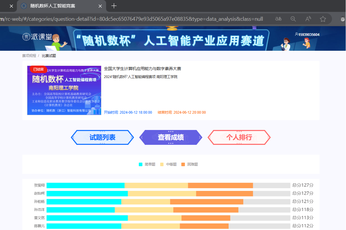 经过激烈角逐,6名参赛选手脱颖而出,晋级省赛,他们将参与9月份举行的省级比赛。比赛结果不仅展示了选手们扎实的编程功底,更体现了他们对人工智能领域的深刻理解和独到见解。我们期待南阳理工学院的选手们能够在后期省赛和国赛更广阔的舞台上绽放光彩。