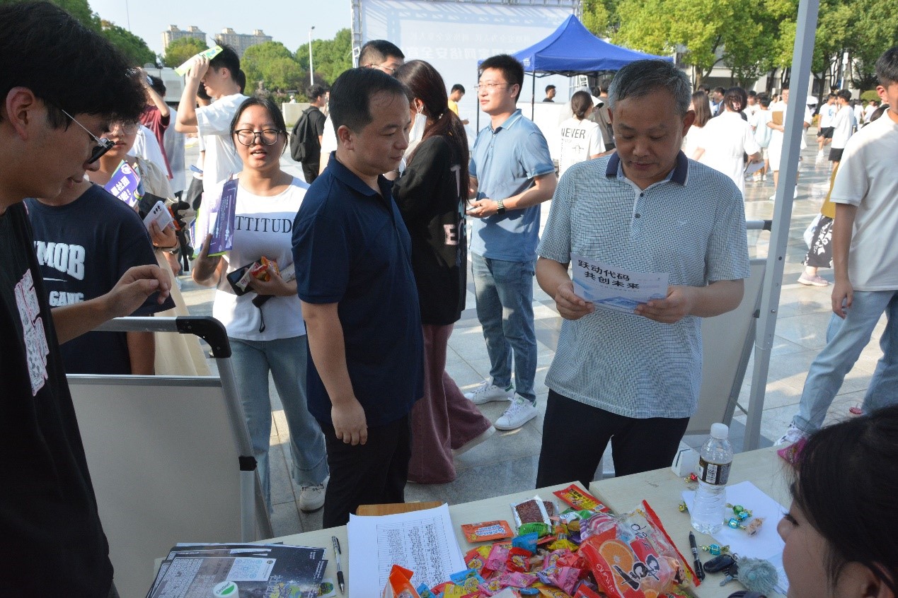 本网讯(特约记者/陈可 学生记者/朱旭辉)9月9日,以“社”彩缤纷,“团”聚青春为主题的计算机与软件学院第四届社团风采展在齐贤广场隆重举行。本次社团风采展旨在展示计算机与软件学院专业社团的特色与成果,吸引更多同学加入其中。活动现场汇聚了38个专业社团,每个社团都展示了自己的特色项目和创新成果。