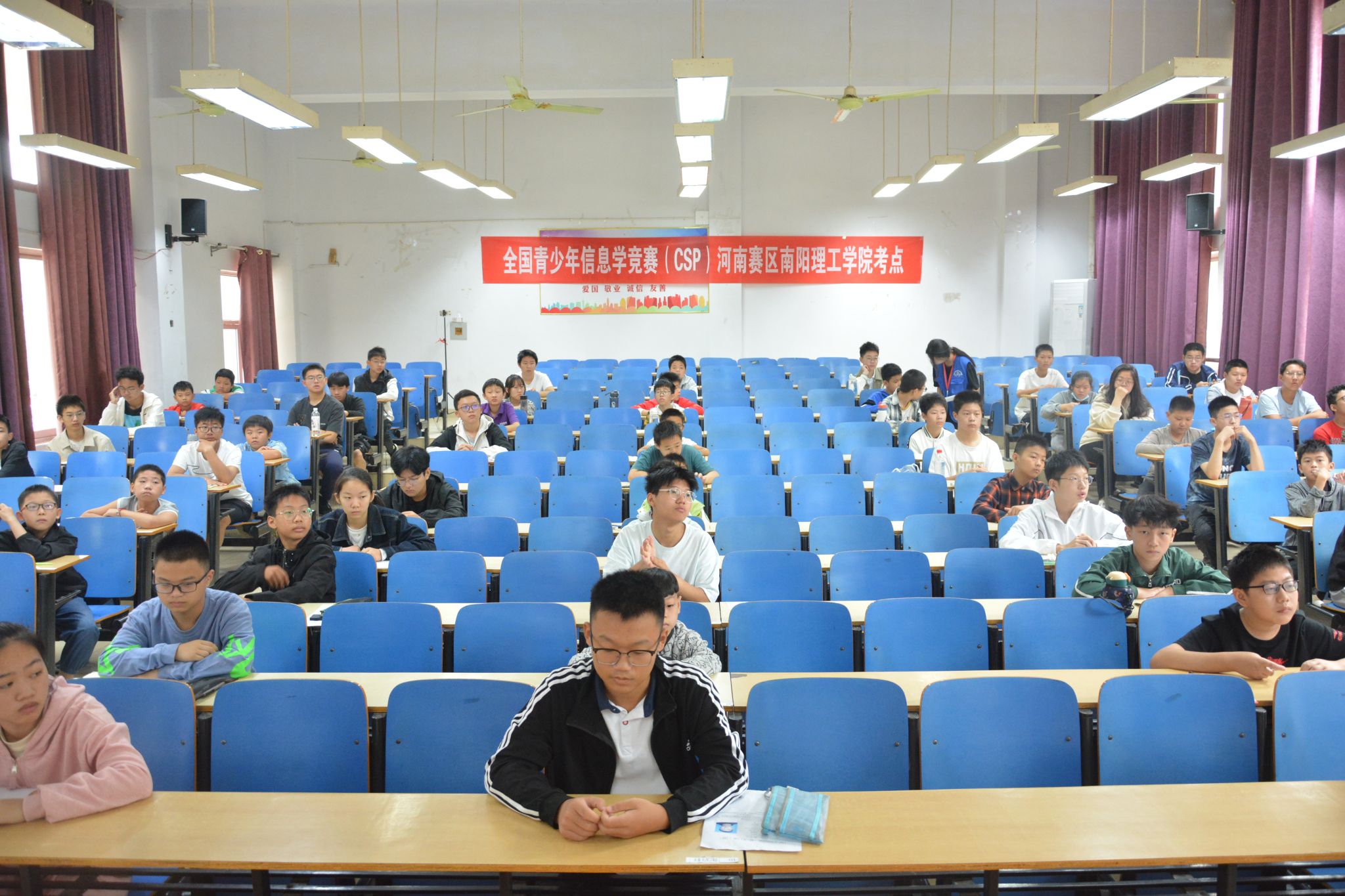 本网讯(特约记者/陈可 学生记者/朱旭辉)9月21日,全国青少年信息学奥林匹克竞赛系列赛事-CSP-J/S2024第一轮认证考试在我校举行。来自南阳地区的92名信息学强手齐聚南工,展开计算思维与技术的巅峰对决。我校考点共设CSP-J1入门级和CSP-S1提高级2个场次,为确保考务工作万无一失,我校计算机与软件学院在考前周密安排、严密组织,科学制定工作方案和应急预案,精心安排考务等各项准备工作。考试过程秩序井然,考风考纪良好,一切工作有条不紊地进行,得到了主办方和各区县考生的高度评价。