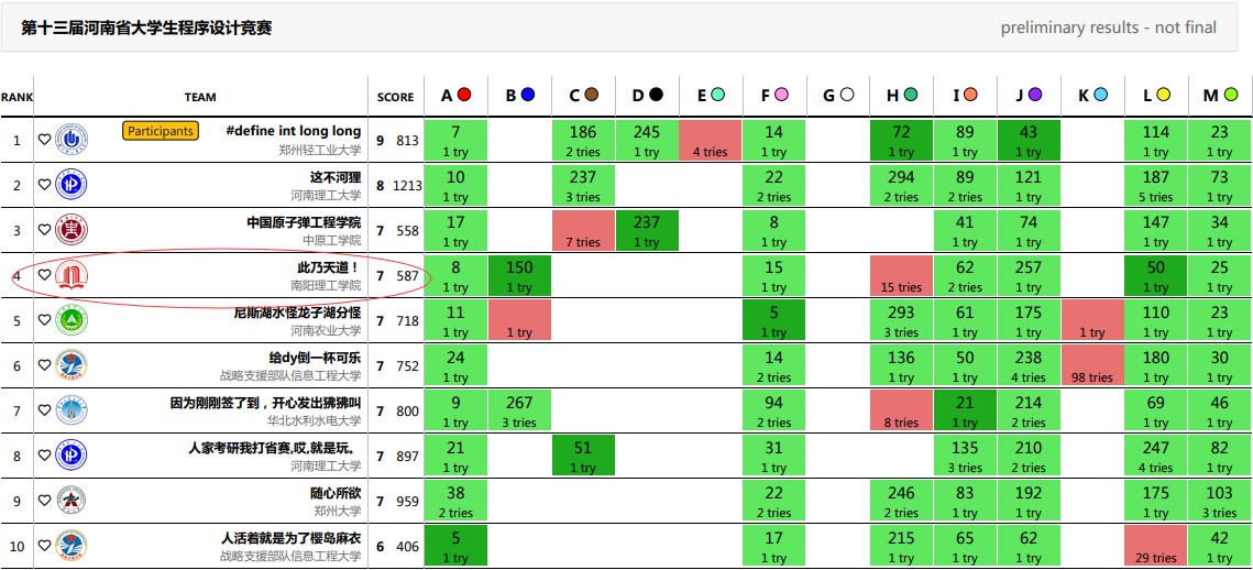 河南省大学生程序设计竞赛已成功举办了十二届,已经成为我省大学生最具影响力的计算机类赛事,为广大爱好计算机编程的大学生提供了充分展示才华的舞台,并有效地推动了河南省计算机教育水平的提高。
