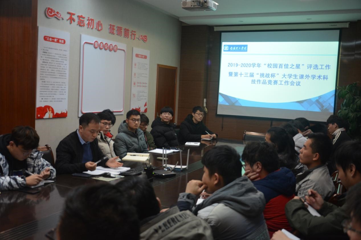12月1日,为深入学习贯彻习近平新时代中国特色社会主义思想,积极培育和践行社会主义核心价值观,发挥先进典型的示范带动作用,实施榜样引领计划,激励学生勤奋学习、锐意进取,营造弘扬正气、歌颂真情、倡导善良、崇尚高雅、争当先锋的校园文化氛围,培养广大学生科学探索精神,积极参与学术科技实践,陈可老师为大学生科技园所有工作室的社长及科技园管理委员会有关人员开展了关于举办第十三届“挑战杯”及评选“校园百佳之星”的工作安排。