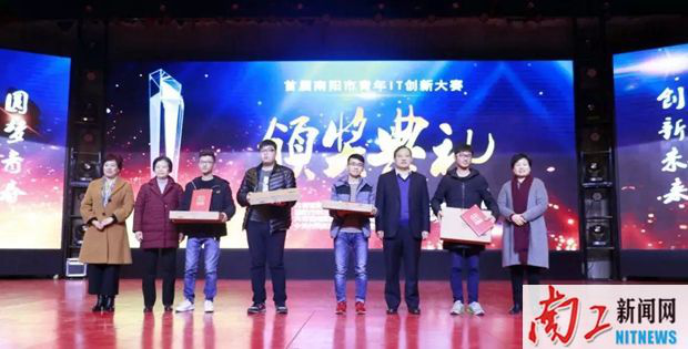 由团市委、市人社局、市科技局、南阳报业传媒集团联合主办,我校校团委和软件学院承办的南阳首届青年IT创新大赛颁奖典礼12月21日在学校毕业大厅举行。市人大常委会副主任庞震凤、副市长谢松民、市政协副主席宋蕙、团市委副书记孙国徽、市人社局副局长李军、市科技局可持续发展中心主任王宇、南阳报业传媒集团纪委书记梁林和校长刘荣英、副校长肖泽昌等出席颁奖典礼。