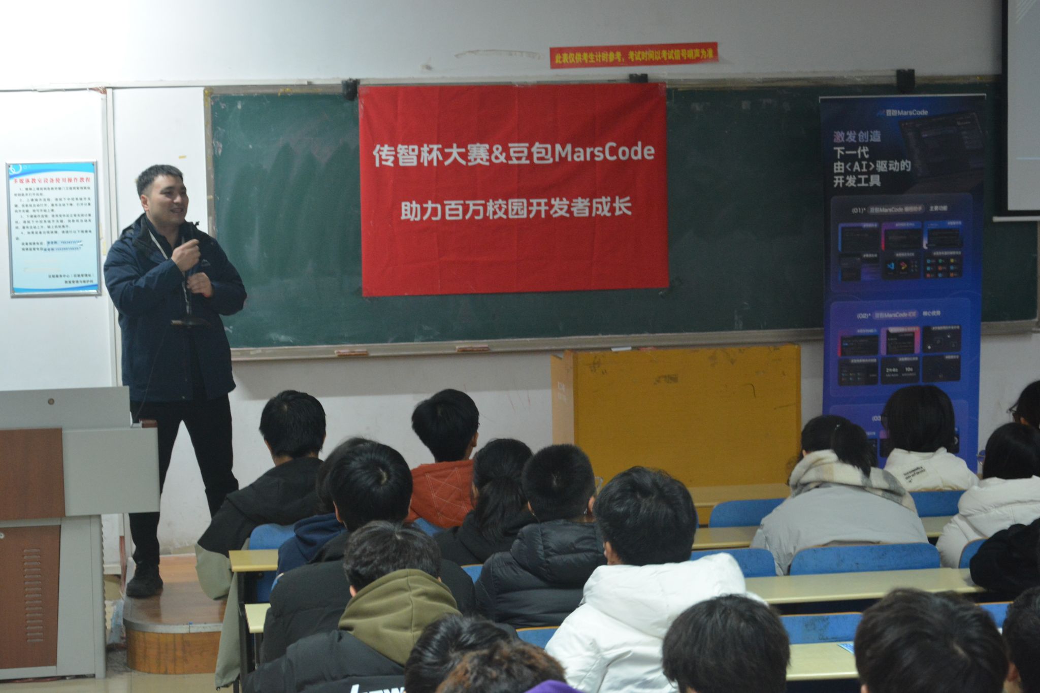 随后,豆包MarsCode宣讲环节同样吸引了众多同学的瞩目。讲人全面而细致地介绍了豆包MarsCode的各项功能特性及其实用操作指南,特别是通过一系列生动的代码补全实例演示,直观展现了豆包MarsCode在提升编程效率方面的卓越表现。无论是编程初学者还是资深开发者,都能从中受益,实现编程效率的翻倍提升。此外,宣讲过程中穿插的抽奖环节更是将现场气氛推向高潮,同学们的热情被充分点燃,对后续的宣讲内容展现出更加浓厚的兴趣与专注。