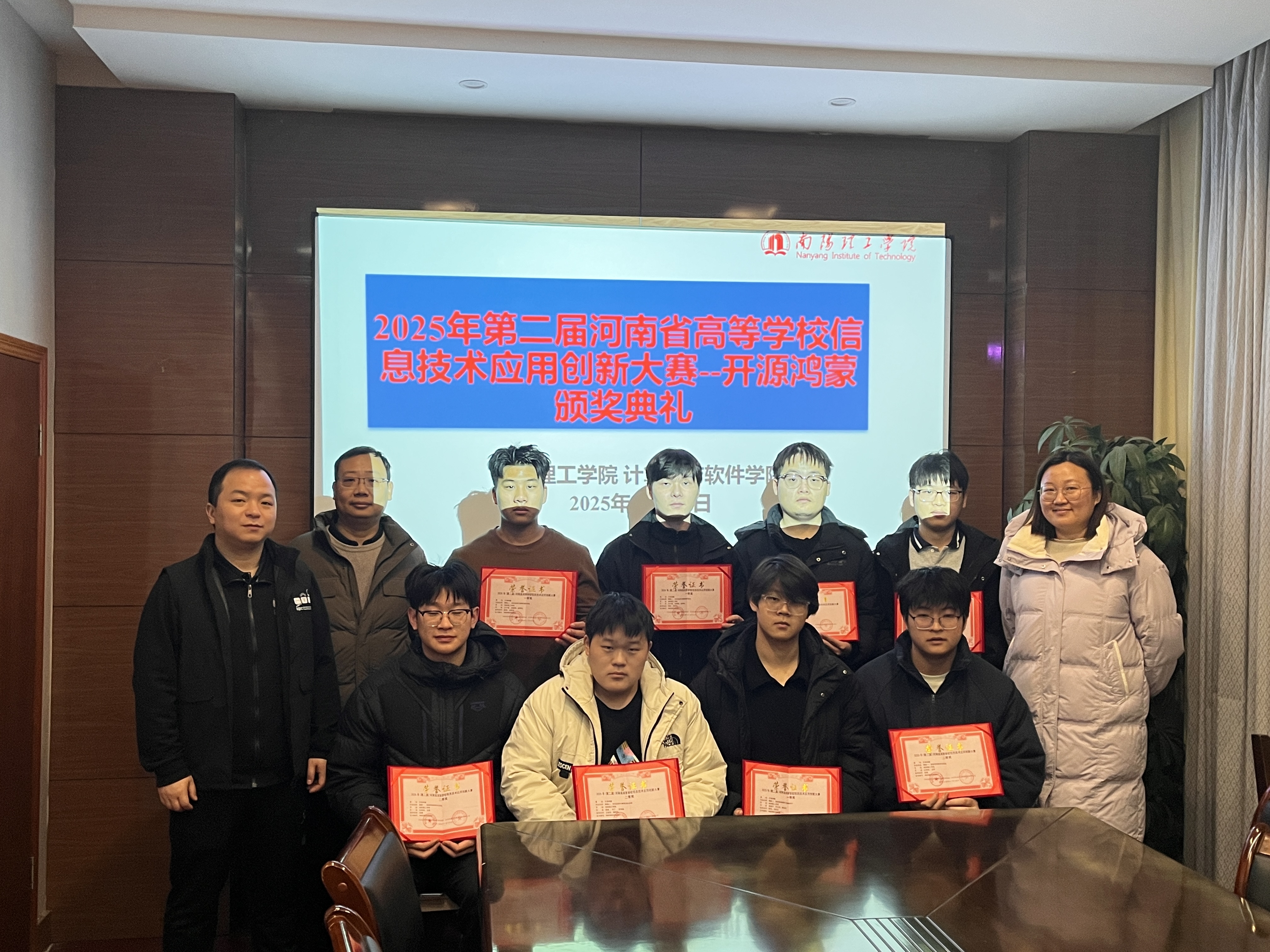 12月23日,第二届河南省高等学校信息技术应用创新大赛-开源鸿蒙(以下简称“开源鸿蒙”)赛项颁奖典礼在我院十五号楼会议室隆重举行。典礼由我院大学生科技园主办,旨在表彰我院在开源鸿蒙领域表现突出的师生团队,推动信息技术应用创新教育发展。