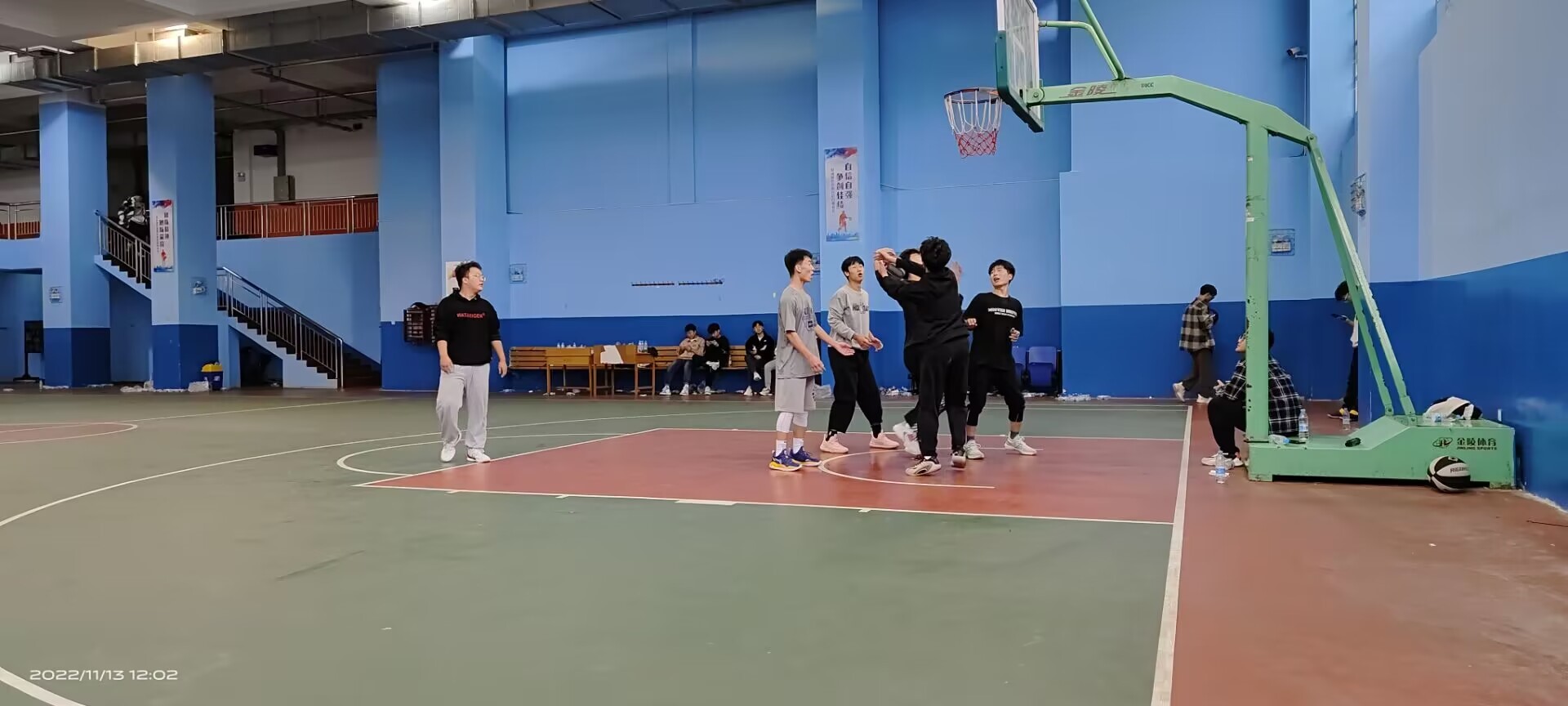 本着友谊第一、拼搏向上的精神,比赛在裁判清脆的哨响中拉开帷幕,高高抛起的篮球点燃了比赛的激情。随着裁判的哨响,整场比赛充满了紧张的气氛,球员的激情全都淋漓尽致的体现在篮球场上。比赛进程中,各位队员全力以赴,积极防守、积极进攻,越战越勇,显示了他们极佳的心理素质。在场同学也情绪高涨、摇旗呐喊,不时为队员打气、喝彩,气氛热烈。赛场上的双方拼抢激烈,带球、运球、投篮等一系列动作潇洒、规范,引来围观同学一阵阵地喝彩。最后比赛在大家的欢呼声落下帷幕。