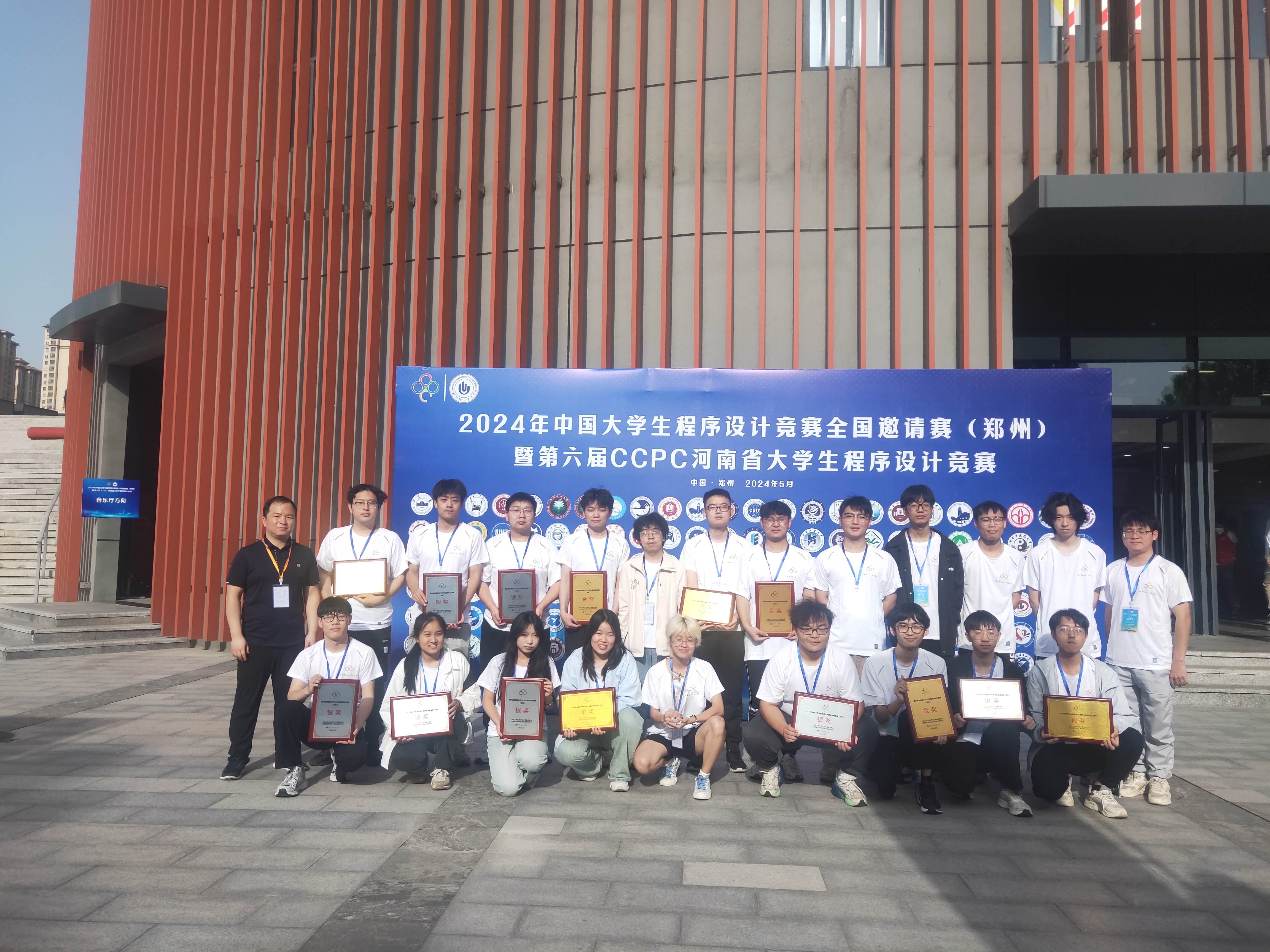 本网讯(特约记者/陈可)5月11日-12日,2024年中国大学生程序设计竞赛全国邀请赛(郑州)暨第六届CCPC河南省大学生程序设计竞赛在郑州轻工业大学成功举办,来自山东大学、同济大学、北京理工大学等150多所高校的442支队伍参加了此次比赛。通过前期选拔,我校共派出7支参赛队伍,其中女生队1支。经过5个小时的比拼,我校共获得全国邀请赛1金3银3铜的佳绩,女生队获得全国最佳女队奖。
