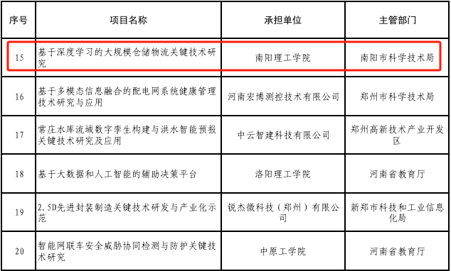 本网讯(特约记者/张政)近日,河南省科技厅公布了2025年度河南省重点研发专项的立项结果,计算机与软件学院邵艳玲教授申报的《基于深度学习的大规模仓储物流关键技术研究》项目成功立项,资助金额100万元。