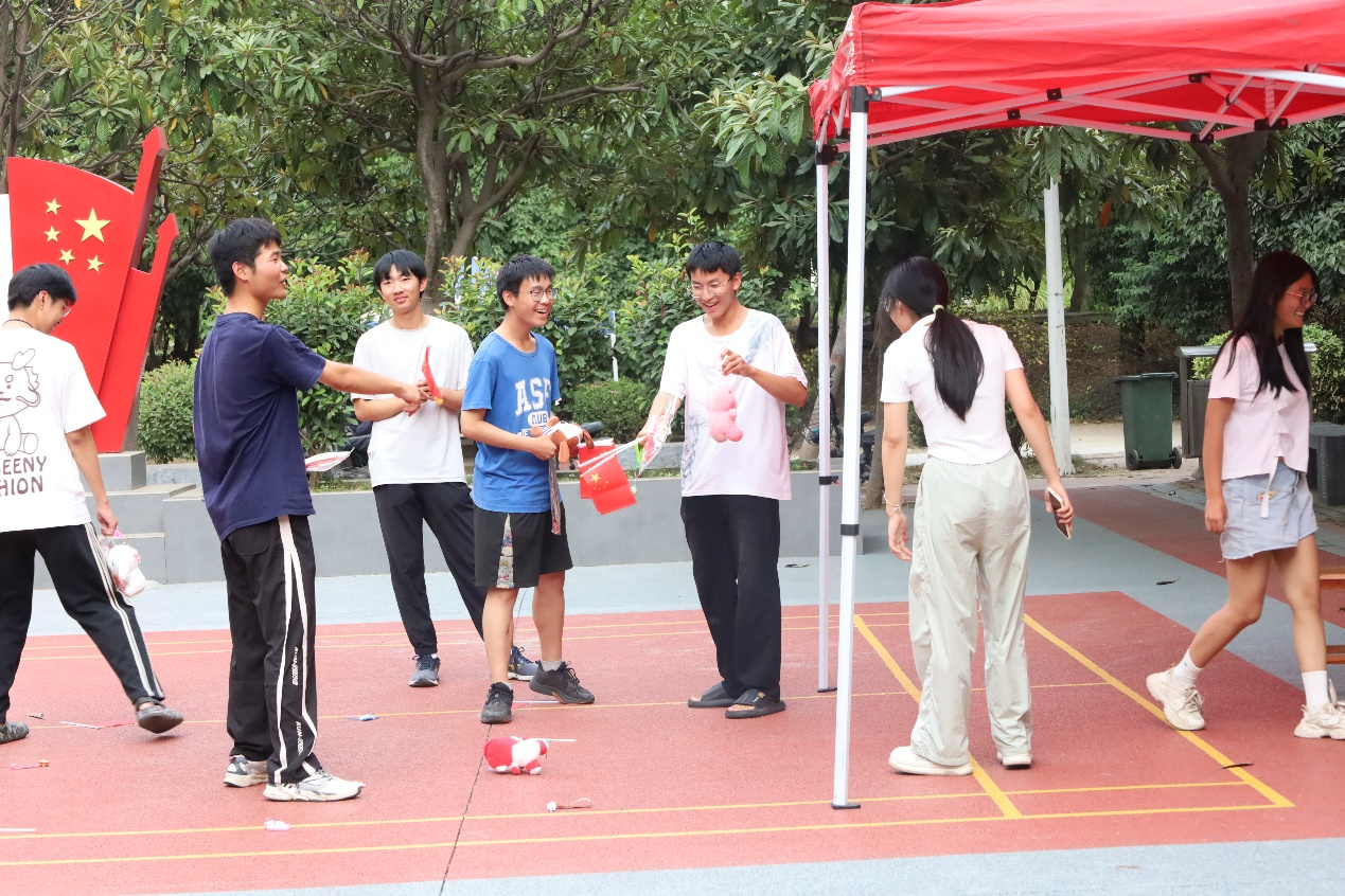 活动当天,广场上彩旗飘扬,洋溢着节日的喜庆氛围。学院师生齐聚一堂,共同参与了与国旗合影、爱国知识竞赛、投壶、书法展等活动。在爱国知识竞赛中,参与者们积极回答关于国家历史和文化的问题,展现了扎实的知识储备,现场气氛热烈,大家争相参与,争夺优胜。同学们结伴与国旗合影留念。