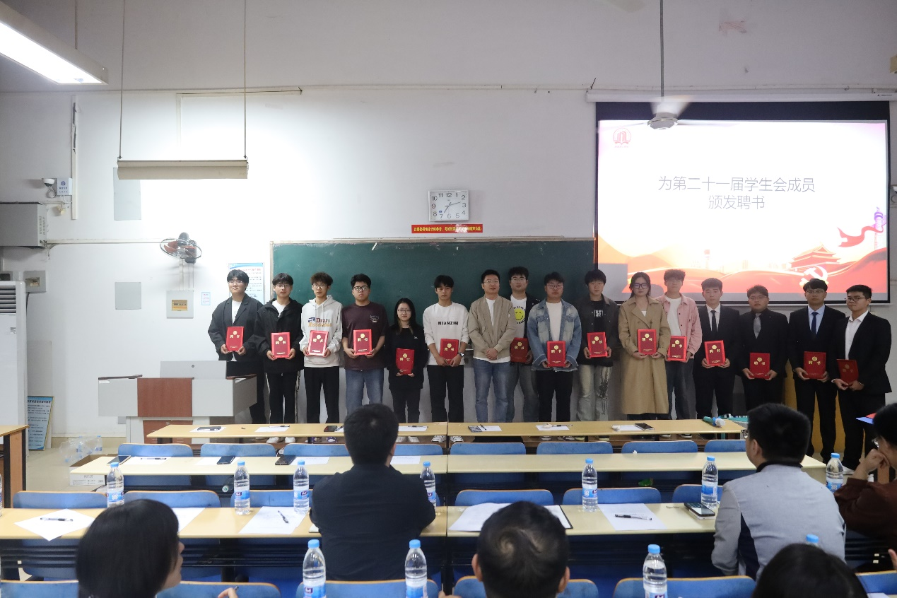 大会开始,首先由学院团学办主任陈旭老师为上一届学生会成员颁发聘书。
