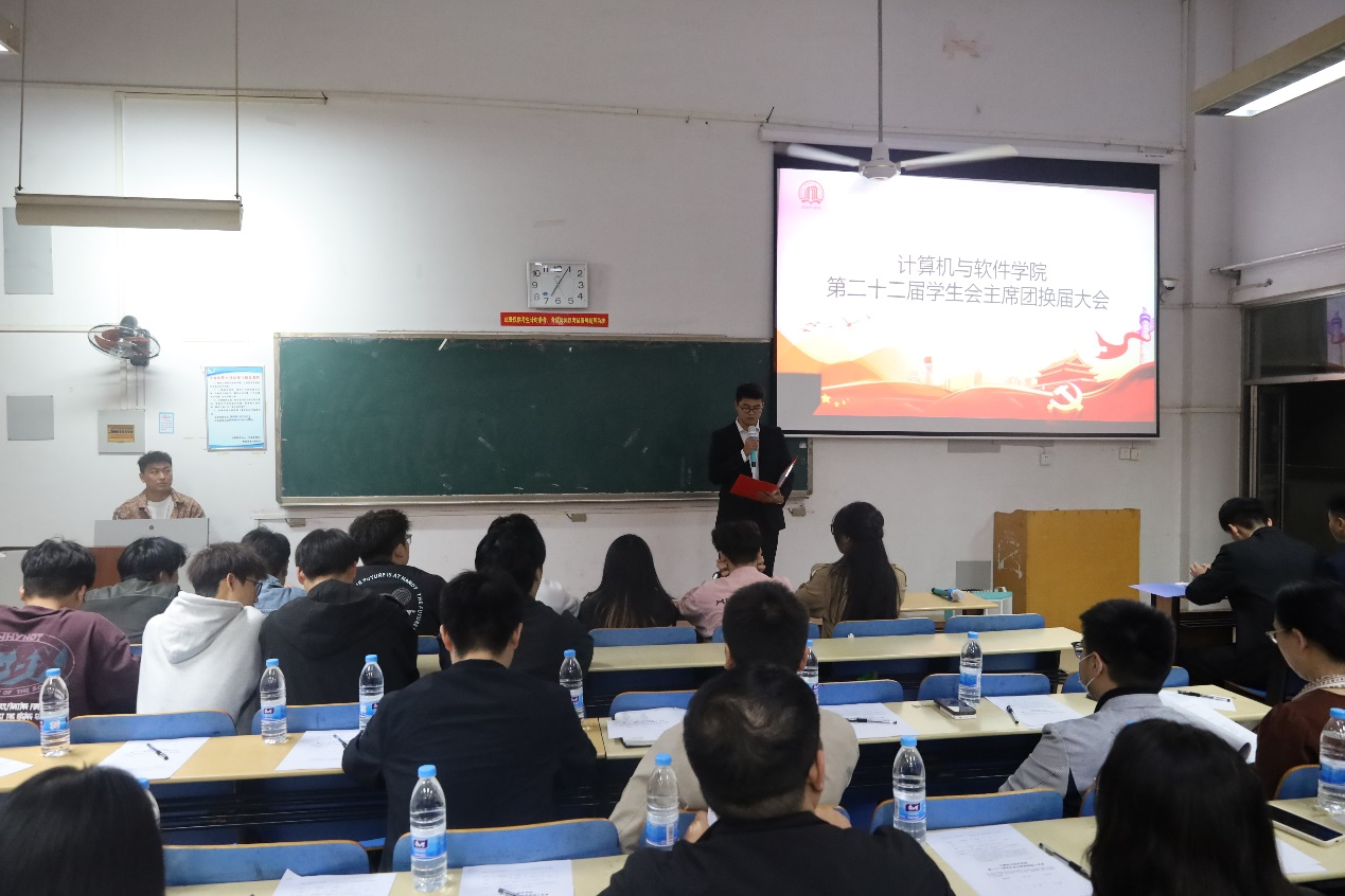 本网讯(学生记者/刘顺博)10月16日,计算机与软件学院在14教104教室举行了第二十二届主席团换届选举大会。