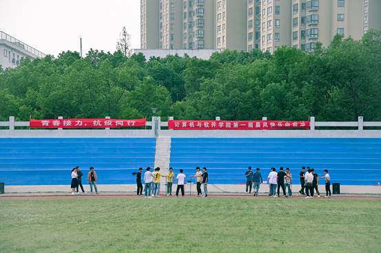 本网讯(学生记者/吴昊)为进一步丰富学生课余生活,推动学生更加广泛地参加体育活动,展现我院学子风采,9月26日下午由计算机与软件学院举办的第一届“晨风快乐向前冲”活动在西北校区田径场开展,党委副书记申玮和团学办副主任陈旭出席本次活动,计算机与软件学院2018级、2019级的千余名同学共同参加本次运动会。
