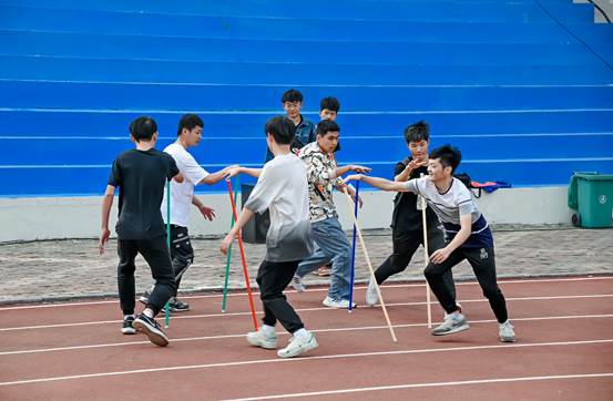 学院千余名学生二十余支队伍同台竞技。在“我们是一条线”,”三个蛇皮袋“,“疯狂的气球”等需要团队协作的项目面前,同学们展现了惊人的组织与协调能力,各自队伍合理安排,相互信任,为团队贡献自己力量。现场气氛热烈,同学们都兴趣高昂,活力满满。