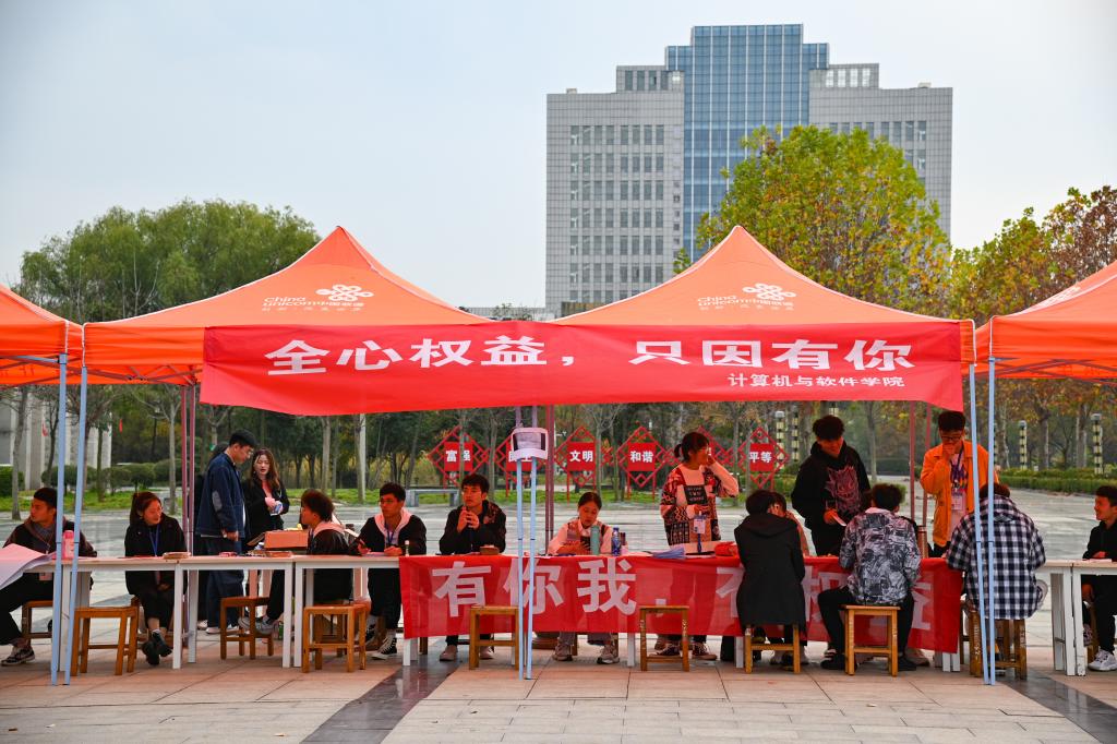 为使大学生更加深入了解权益知识并切实提高同学们的防诈骗意识,11月19日,计算机与软件学院综合素质中心在东南校区齐贤广场面向全校师生举办权益知识普及活动并开展防诈骗知识竞赛。