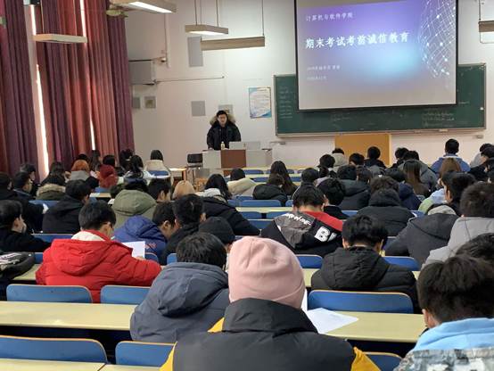 本网讯(学生记者/崔建明)为切实树立优良的学风校风,顺利完成本学期的期末考试,近日,我院各班级于14教召开以“遵守考场纪律,维护良好学风”为主题的班会,此次班会由团学办各辅导员主持。