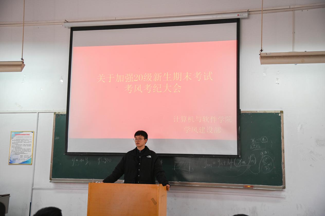 会上,学生组织学风建设部部长李继航提醒同学们,要清楚地认识到考试舞弊行为的严重后果。希望同学能合理安排好期末时间,制定可行科学的复习计划。最后,李继航列举了几个典型的因考试违纪或者课程未通过而影响正常毕业的学生。希望同学们引起重视,做到诚实守信、严谨自律,坚决抵制弄虚作假、徇私舞弊的不良风气。