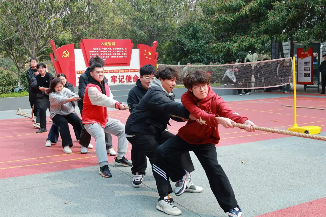 随着裁判长鸣的哨音划破晴空,蓄势已久的对抗赛正式点燃战火。初春的温暖被青春的激情点燃,参赛队伍在抽签台前屏息凝神,候场区此起彼伏的加油声交织成乐章。当红绸系上麻绳的刹那,对阵双方如两股蓄势待发的激流——队员们双脚紧蹬地面,身体后仰成弓步,粗粝的麻绳在掌心勒出深深的红印,紧绷的绳索像绷紧的弦,在力量的拉锯中微微颤动。